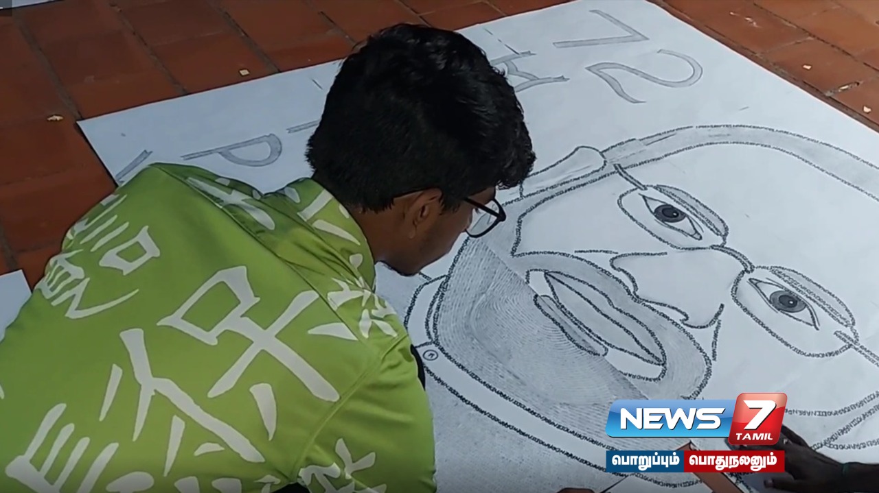 முன்னிட்டு அவரது ஓவியத்தை வரைந்து பள்ளி மாணவன் வரைந்து சாதனை படைத்துள்ளார்.