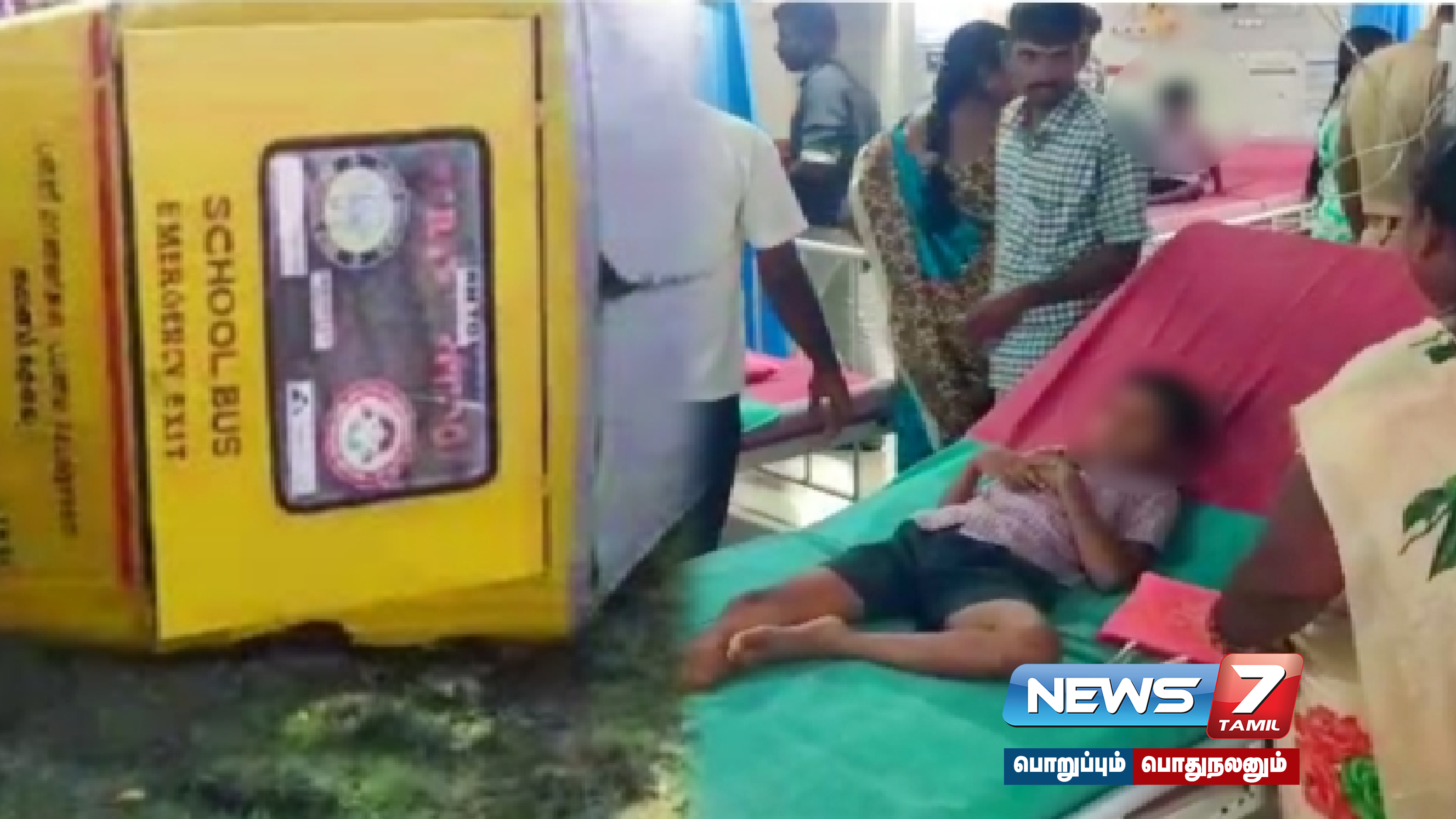 கடலூர் ரயில்வே தண்டவாளம் அருகே சாலையோர பள்ளத்தில் பள்ளி வேன் கவிழ்ந்து விபத்துக்குள்ளானது.