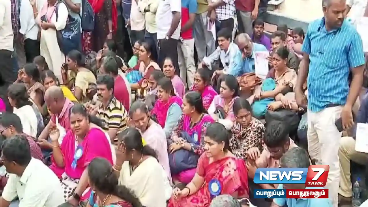 சென்னை எழும்பூரில் உள்ள கல்வி அலுவலகம் அருகே 7வது நாளாக இன்றும் இடைநிலை ஆசிரியர்கள் போராட்டம் நடத்தி வருகின்றனர்.