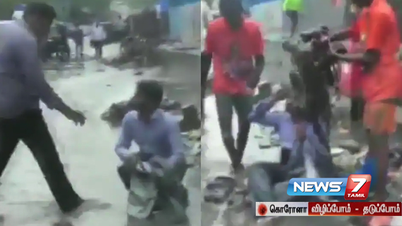 இந்நிலையில் காந்திவலி தொகுதி சிவசேனா சட்டமன்ற உறுப்பினர் திலீப் லண்டே, அந்தப் பகுதியில் ஆய்வு மேற்கொண்டார். தண்ணீர் பல்வேறு பகுதிகளில் தேங்கி இருந்ததால், வடிகால்களைத் தூா்வாரும் பணியில் ஈடுபட்டுள்ள ஒப்பந்ததாரரிடம் அதுதொடா்பாக கேட்டார். பின்னர் அவர் தனது பணியை சரியாகச் செய்யவில்லை என்று கூறி, மழைநீா் ஓடும் சாலையில் அமரவைத்து, அவா் மீது குப்பைகளை கொட்ட வைத்தார். இதுதொடா்பான வீடியோ சமூக வலைதளங்களில் வைரலாயின.
