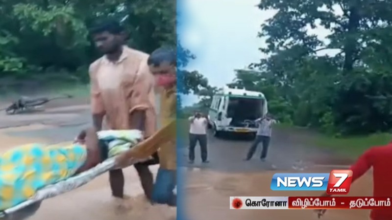 மறுகரையில், சுபத்ரா பிரசவ வலியுடன் துடித்துக் கொண்டிருந்தார். இதையடுத்து, ஆம்புலன்ஸ் ஊழியர்கள், ஸ்டெச்சரில் சுபத்ராவை சுமந்து, ஓடையில் இறங்கி ஆம்புலன்ஸ் வாகனத்திற்கு எடுத்துச் சென்றனர். எனினும், சுபத்ராவுக்கு பிரசவ வலி அதிகரித்து, ஆம்புலன்ஸ்சிலேயே குழந்தை பிறந்தது. பின்னர், அவர் மருத்துவமனையில் சேர்க்கப்பட்டு சிகிச்சை பெற்று வருகிறார்.