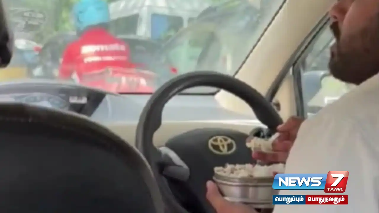 கடுமையான போக்குவரத்து நெரிசலால் டிராஃபிக்கிலேயே மதிய உணவை முடித்துக் கொண்ட கார் ஓட்டுநரின் வீடியோ இணையத்தில் வைரலாகி வருகிறது.