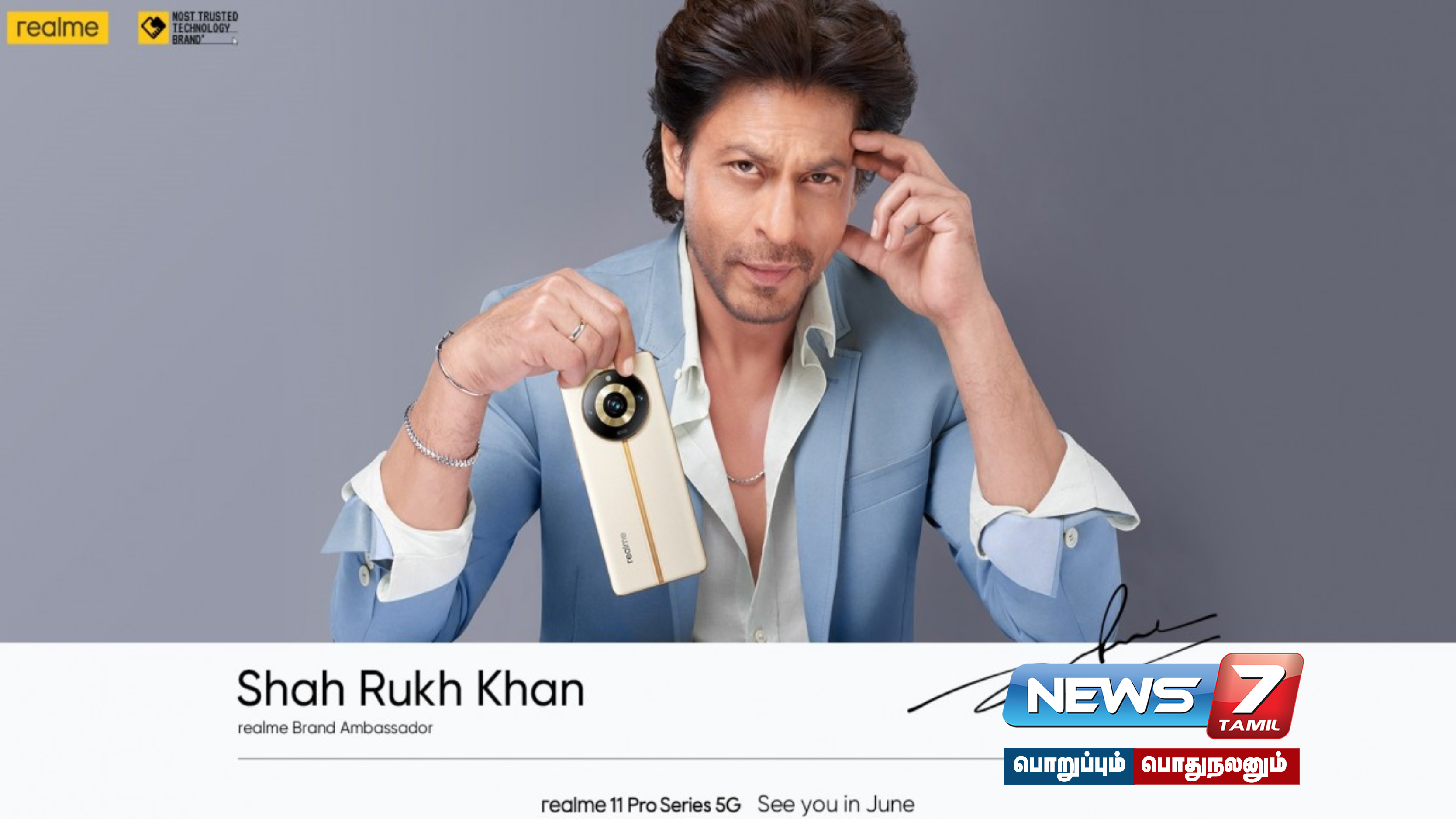 இந்நிலையில் பாலிவுட் திரையுலகின் பாட்ஷா, சூப்பர் ஸ்டார் என ரசிகர்களால் கொண்டாடப்பட்டு வரும் ஷாருக்கானை, இந்தியாவில் ரியல்மீ நிறுவனத்தின் புதிய விளம்பர தூதராக இன்று அறிவித்துள்ளது.