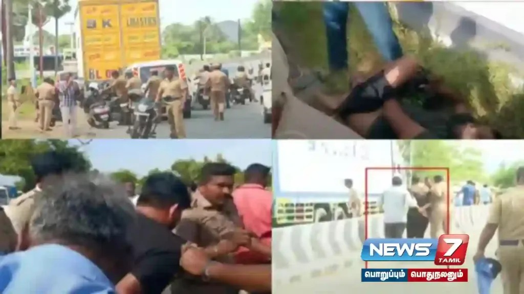 அப்பகுதியைச் சுற்றி சுமார் 100-க்கும் மேற்பட்ட போலீசார் பாதுகாப்பு பணியில் ஈடுபட்டனர். மொத்தம் 7 பேர் இந்த கண்டெய்னர் லாரியில் இருந்துள்ளனர். ராஜஸ்தான் மாநில பதிவெண் கொண்ட இந்த லாரியில் இருந்தவர்கள் வட மாநிலங்களைச் சேர்ந்தவர்கள் என்பது தெரிய வந்தது.