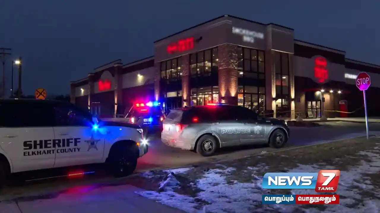 அமெரிக்காவின் இண்டியானா மாகாணத்தில் உள்ள எல்கார்ட் நகரில் வணிக வளாகம் ஒன்று செயல்பட்டு வருகிறது. அங்குள்ள ஒரு கடைக்கு பொருட்கள் வாங்குவது போல் இளைஞர் ஒருவர் சென்றிருந்தார். அப்போது அவர் திடீரென தான் மறைத்து வைத்திருந்த துப்பாக்கியை எடுத்து சுட ஆரம்பித்தார். இதில் கடைக்குள் இருந்த இருவர் சம்பவ இடத்திலேயே உயிரிழந்தனர். அருகில் இருந்தவர்கள் உடனடியாக போலீசாருக்கு தகவல் அளித்தனர்.