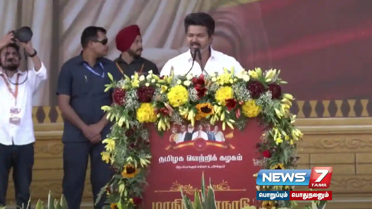 தமிழக வெற்றிக் கழகத்தின் தலைவர் விஜய், கட்சியின் இரண்டாவது மாநில மாநாட்டில் ஆற்றிய உரையில், அரசியல் அரங்கில் புதிய அதிர்வலைகளை ஏற்படுத்தியுள்ளார். தனது பேச்சின்போது, எம்.ஜி.ஆர். பாணியில், “எதிர்காலம் வரும் என் கடமை வரும் இந்தக் கூட்டத்தின் ஆட்டத்தை ஒழிப்பேன்” என்று பாடல் வரிகளைப் பாடினார்.