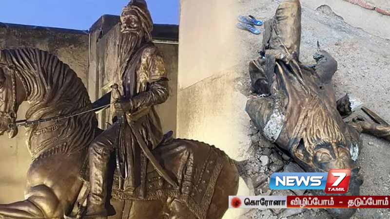 தடை செய்யப்பட்ட தெஹ்ரீக்-ஏ-லபாயக் என்ற பாகிஸ்தான் பயங்கரவாதிகள் இதைத் தகா்த்தனா். அந்த சிலையை அவர்கள் உடைத்து நொறுக்கும் காட்சிகள், வீடியோவாக சமூக வலைதளங்களில் பரவின. இது தொடா்பாக வழக்குப் பதிவு செய்த போலீசார், சிலரை கைது செய்துள்ளனர்.
