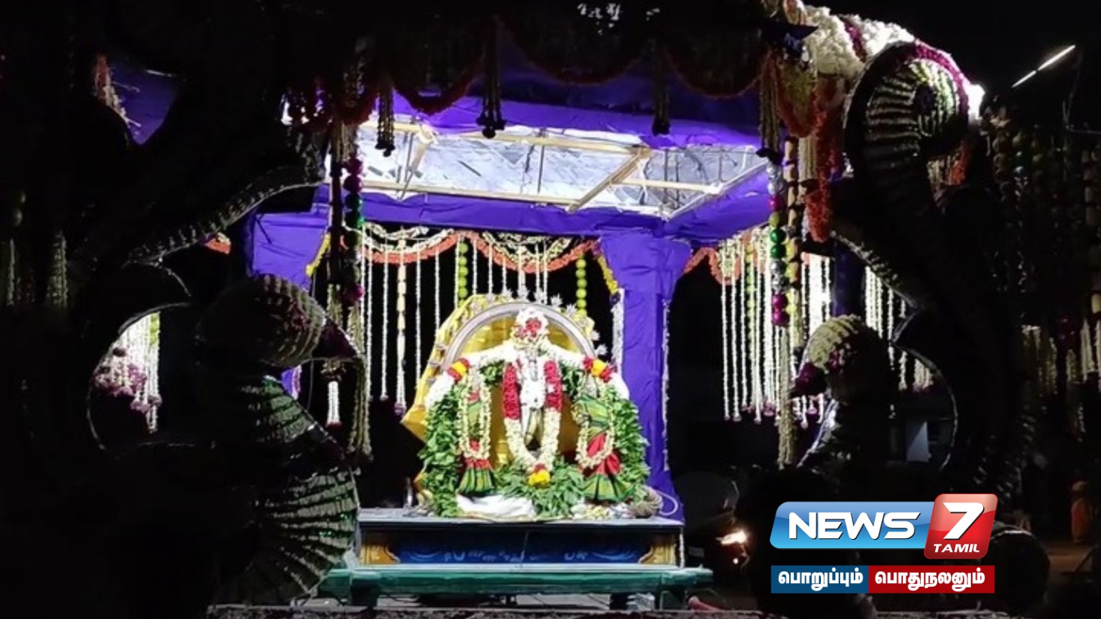 தருமபுரம் ஆதீனம் 27வது குரு மகா சன்னிதானம் ஸ்ரீலஸ்ரீ மாசிலாமணி தேசிக ஞானசம்பந்த பரமாச்சாரியார் சுவாமிகள் முன்னிலையில், சிறப்பு நாதஸ்வர கச்சேரி, நாட்டிய நிகழ்வுடன் புஷ்பப் பல்லக்தில் பஞ்ச மூர்த்திகள் வீதி உலா நடைபெற்றது.