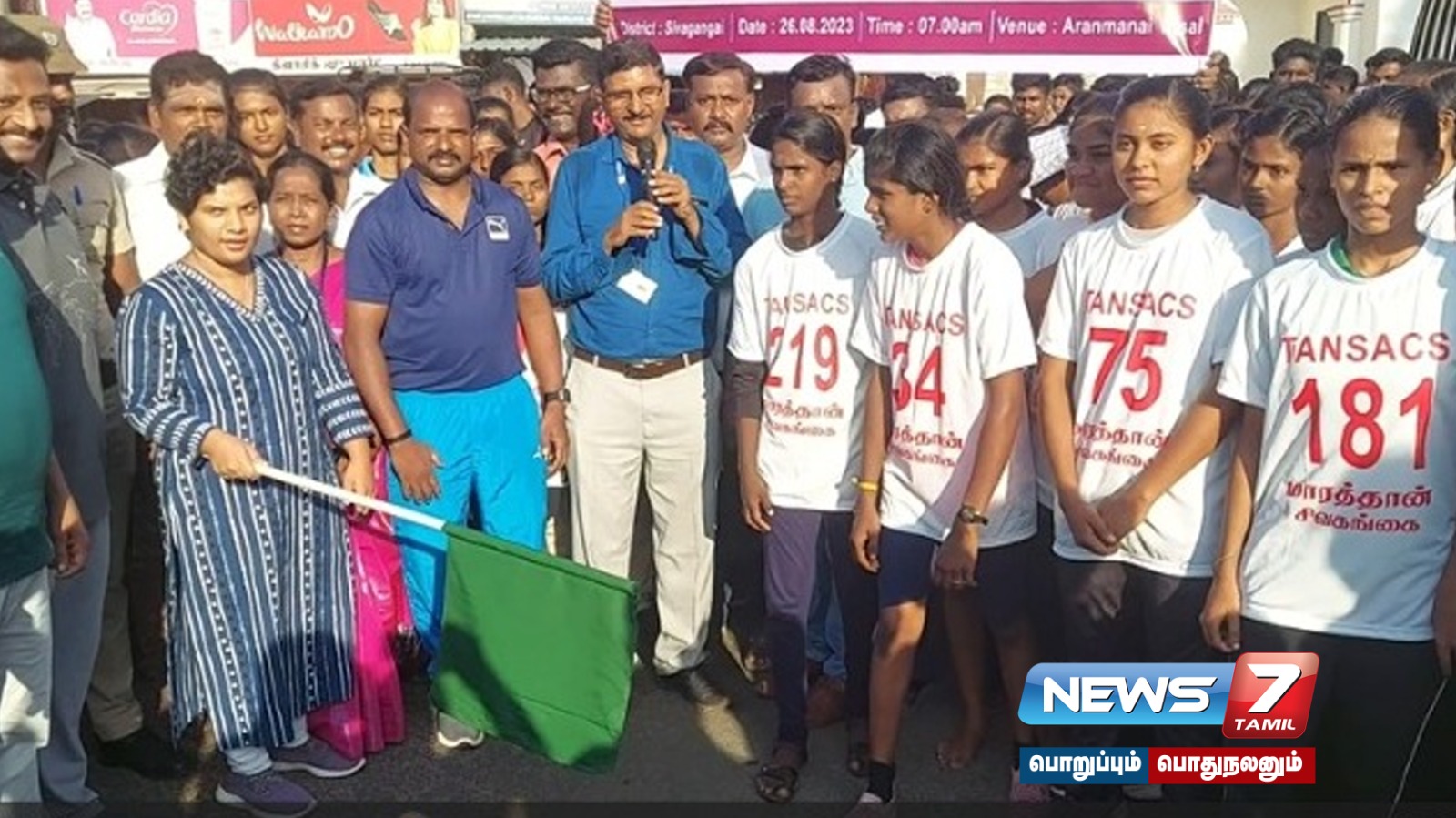 உலக இளைஞர் தினத்தை முன்னிட்டு தமிழ்நாடு எய்ட்ஸ் கட்டுப்பாட்டு கழகம் சார்பாக சிவகங்கையில் சிறப்பு விழிப்புணர்வு மாரத்தான் போட்டியை மாவட்ட ஆட்சியர் ஆஷா அஜித் கொடியசைத்து துவக்கி வைத்தார்.