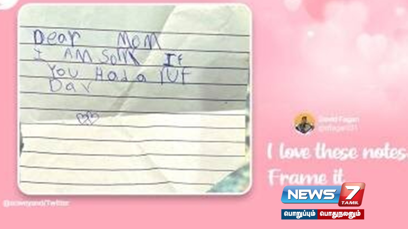 Shematologist MD என்ற ட்விட்டர் பயனாளர் தன் பக்கத்தில் காகிதத்தில் எழுதப்பட்டுள்ள ஒரு குறிப்பை பகிர்ந்துள்ளார். அதில், ‘அன்புள்ள அம்மா.. உங்களுக்கு கடினமான நாளாக அமைந்திருந்தால் என்னை மன்னித்துவிடுங்கள்.’ என்று கூறியுள்ளார். குறிப்பின் கீழே இரண்டு ஹார்ட்டின்களையும் வரைந்துள்ளார். தன் 6 வயது மகளின் இந்த பேரழகான குறிப்புடன், ‘இப்போது தான் இது கண்ணில்பட்டது. என் கடைசி மூச்சு இருக்கும் வரை இதை பத்திரமாக பாதுகாப்பேன்.’ என்று நெகிழ்ச்சியாக கூறியுள்ளார்.