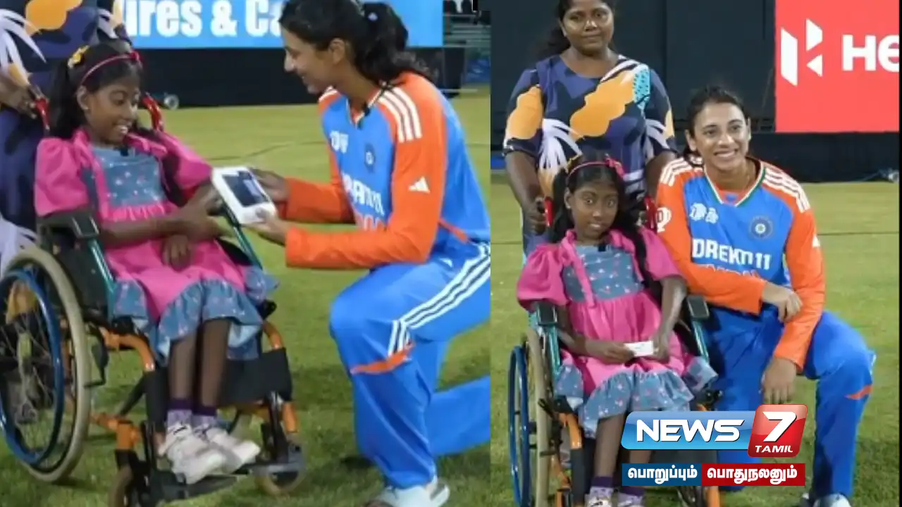 இந்திய கிரிக்கெட் வீராங்கனை ஸ்மிருதி மந்தனா இலங்கை ரசிகைக்கு செல்ஃபோனை பரிசளித்தார்.