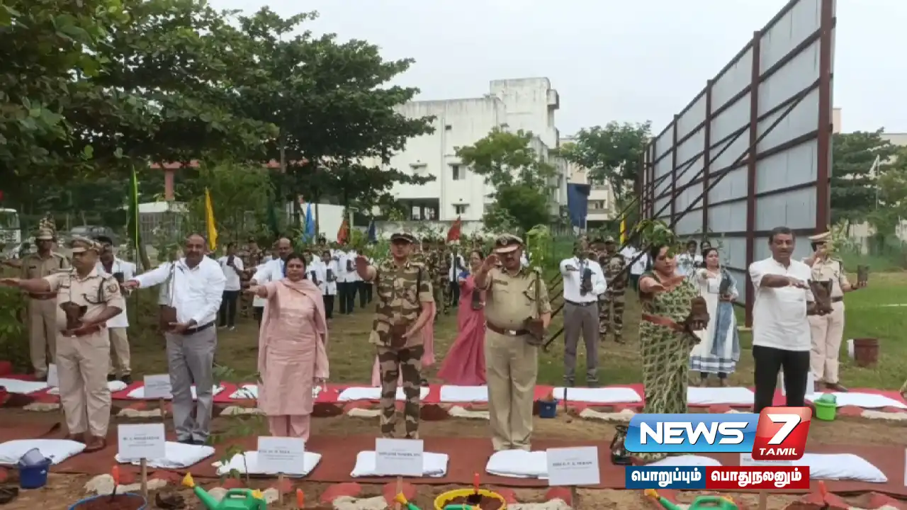 சி.ஐ.எஸ்.எப். காவல்துறையினருடன், மருத்துவ மாணவர்கள் இணைந்து 3 ஆயிரம் மரக்கன்றுகளை ஒரே நேரத்தில் நட்டனர்.