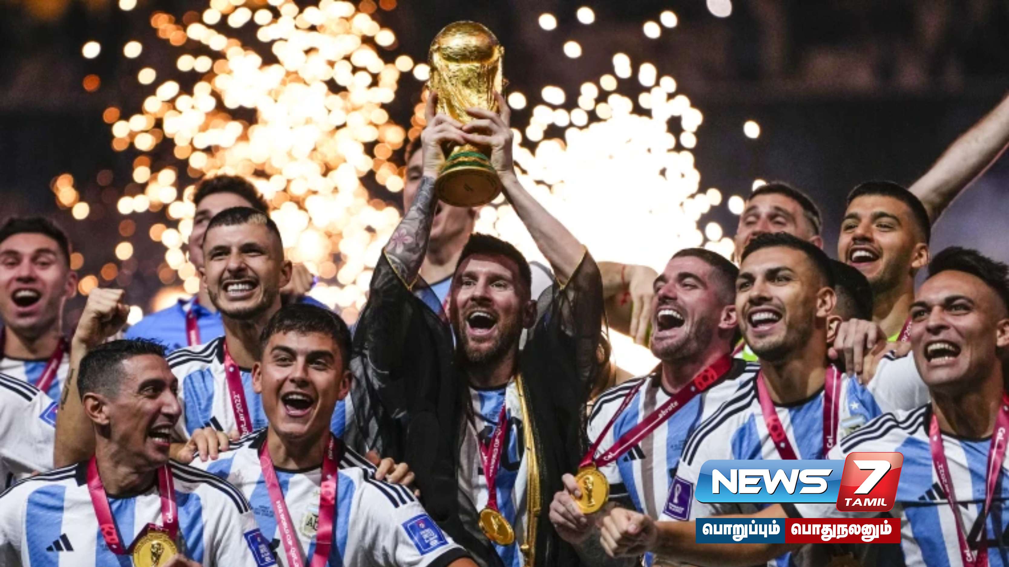 கத்தாரில் நடைபெற்ற உலகக்கோப்பை தொடரின் இறுதி ஆட்டத்தில் பிரான்ஸ் அணியை வீழ்த்தி அர்ஜெண்டினா அணி சாம்பியன் பட்டத்தை வென்றது.