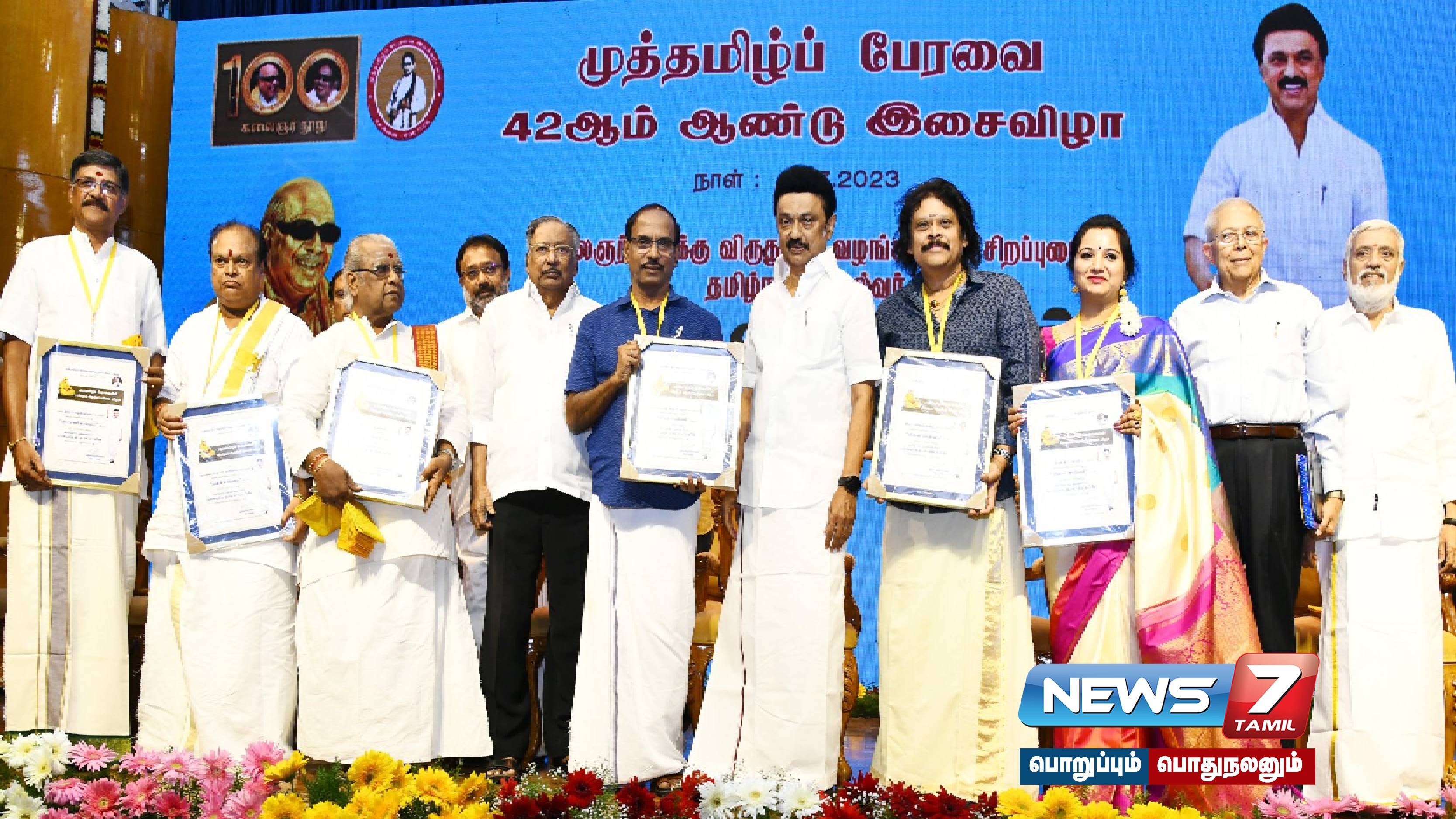 “இயல் செல்வம்” விருதினை பட்டிமன்றம் புகழ் எஸ்.ராஜாவுக்கும், “இசை செல்வம்” விருதினை எஸ்.மகதி-க்கும், “ராஜரத்னா” விருதினை இஞ்சிக்குடி ஈ.பி.கணேசனுக்கும், “நாட்டிய செல்வம்” விருதினை வழுவூர் எஸ்.பழனியப்பனுக்கும், “வீணை செல்வம்” விருதினை ராஜேஷ் வைத்யாவுக்கும், “தவில் செல்வம்” விருதினை இடும்பாவனம் கே.எஸ்.கண்ணனுக்கும் வழங்கி முதலமைச்சர் மு.க.ஸ்டாலின் கௌரவித்தார். இவ்வாறு அந்த பதவில் கூறப்பட்டுள்ளது.