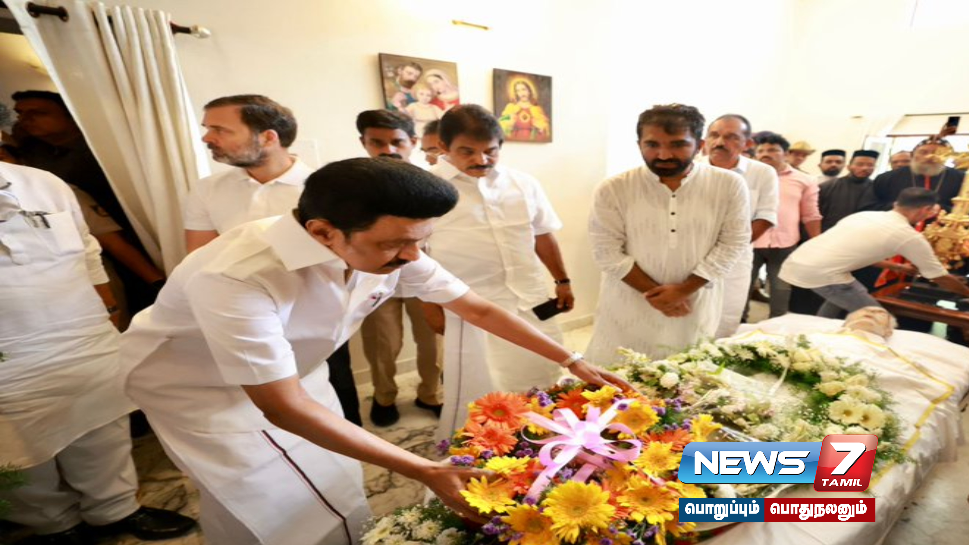 மறைந்த கேரளா முன்ளாள் முதலமைச்சர் உம்மன் சாண்டியின் உடலுக்கு காங்கிரஸ் முன்னாள் தலைவர்கள் சோனியா காந்தி, ராகுல் காந்தி, தமிழ்நாடு முதலமைச்சர் மு.க.ஸ்டாலின் உள்ளிட்டோர் அஞ்சலி செலுத்தினர்.