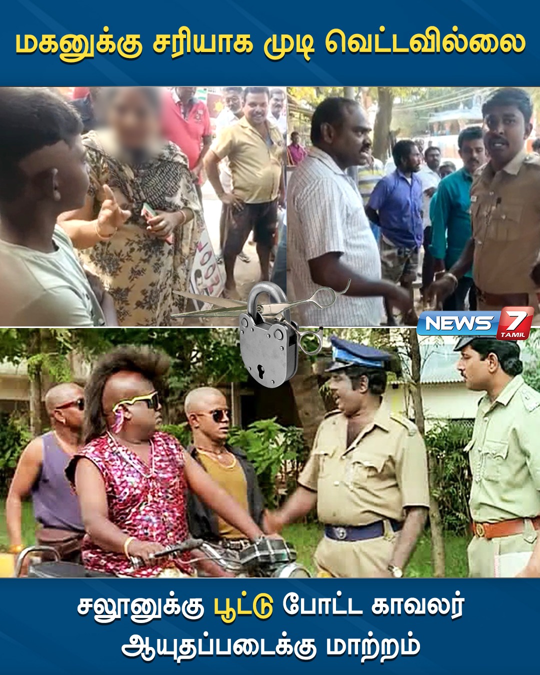 திருநெல்வேலி மாவட்டம் திசையன்விளை காவல் நிலையத்தில் பணிபுரியும் நேவிஸ் பிரிட்டோ. இவரது மகன் இன்று முடி வெட்டுவதற்காக சலூன் கடைக்கு சென்று உள்ளதாக கூறப்படுகிறது. தனது மகனுக்கு முடியை சரியாக வெட்டவில்லை என்று கூறி திசையன்விளை காவல் நிலையத்தில் பணிபுரியும் காவலர் நேவிஸ் பிரிட்டோ மற்றும்