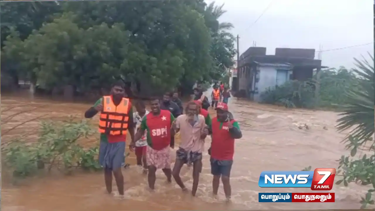 தூத்துக்குடி மாவட்டத்தில் மழை வெள்ளத்தில் பலர் சிக்கி தவித்து வரும் நிலையில், ஸ்ரீவைகுண்டம் பகுதியை சேர்ந்த கர்ப்பிணி பெண் மயில்சேது மற்றும் அவரது குடும்பத்தினரை மீட்ட மீட்பு படையினர் முதலுதவிக்காக மதுரை ராஜாஜி அரசு மருத்துவமனைக்கு அனுப்பி வைத்தனர்.