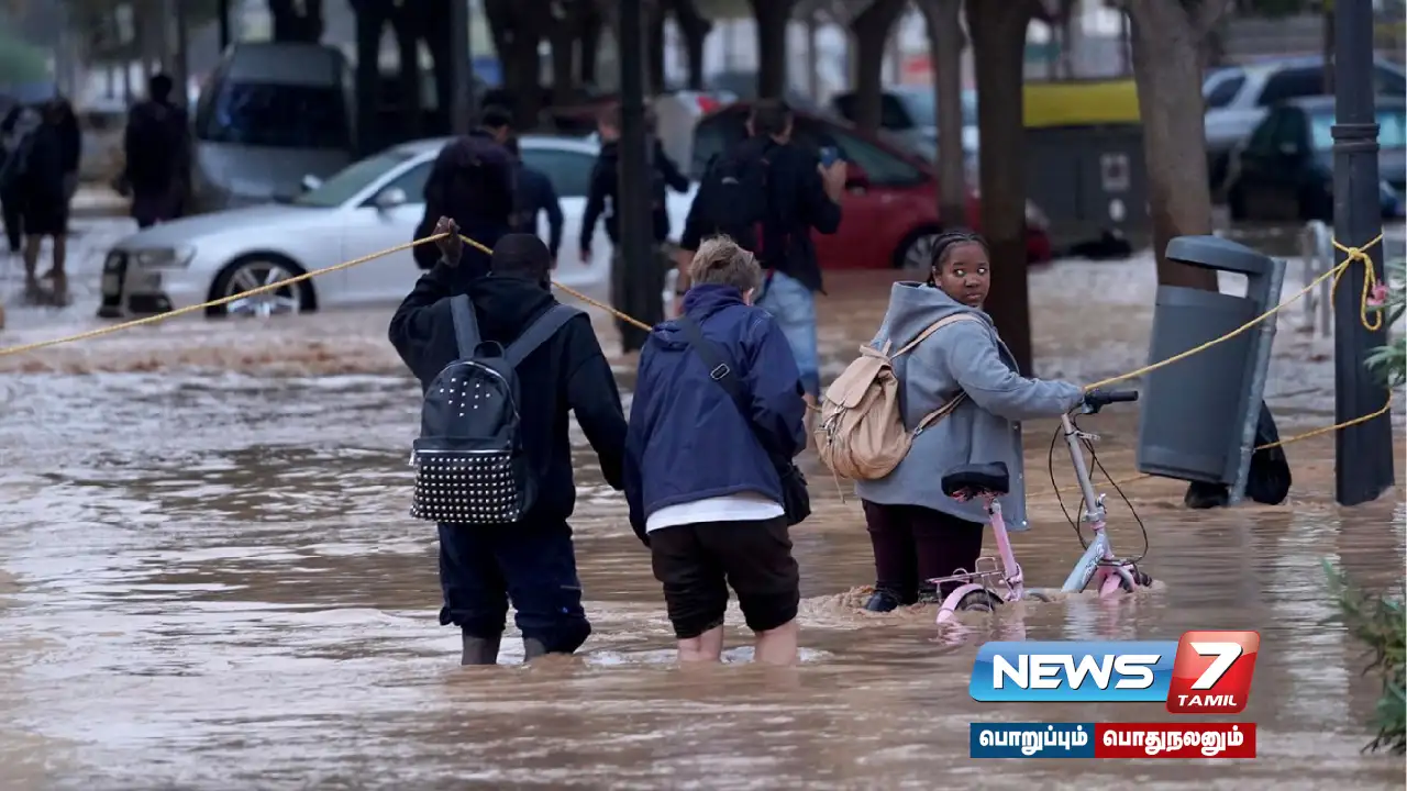 ஸ்பெயின் நாட்டின் வெலன்சியா மாகாணத்தில் நேற்று (அக்.29) பலத்த காற்றுடன் கூடிய கனமழை பெய்தது. இந்த தொடர் கனமழை காரணமாக சாலைகளில் மழைநீர் சூழ்ந்தது. வீட்டு வாசல்களில் நிறுத்தி வைக்கப்பட்டிருந்த கார்கள் மழை வெள்ளத்தில் அடித்துச் செல்லப்பட்டன. நகரங்களின் பல பகுதிகள் வெள்ளக்காடாய் காட்சியளிக்கின்றன. சாலைகளில் மழைநீர் சூழ்ந்துள்ளதால் போக்குவரத்து சேவை பாதிக்கப்பட்டுள்ளது. அதனுடன் ரயில் சேவையும் பாதிக்கப்பட்டுள்ளது. மக்கள் தங்கள் வீடுகளை விட்டு வெளியேற முடியாமல் தவித்து வருகின்றனர். மேலும், இந்த மழையால் பல்வேறு ஆறுகளில் வெள்ளப்பெருக்கு ஏற்பட்டது.