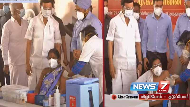 சென்னை தனியார் பள்ளியில் கொரோனா தடுப்பூசி போடும் திட்டத்தை தமிழக முதலமைச்சர் மு.க.ஸ்டாலின் தொடங்கி வைத்தார்.