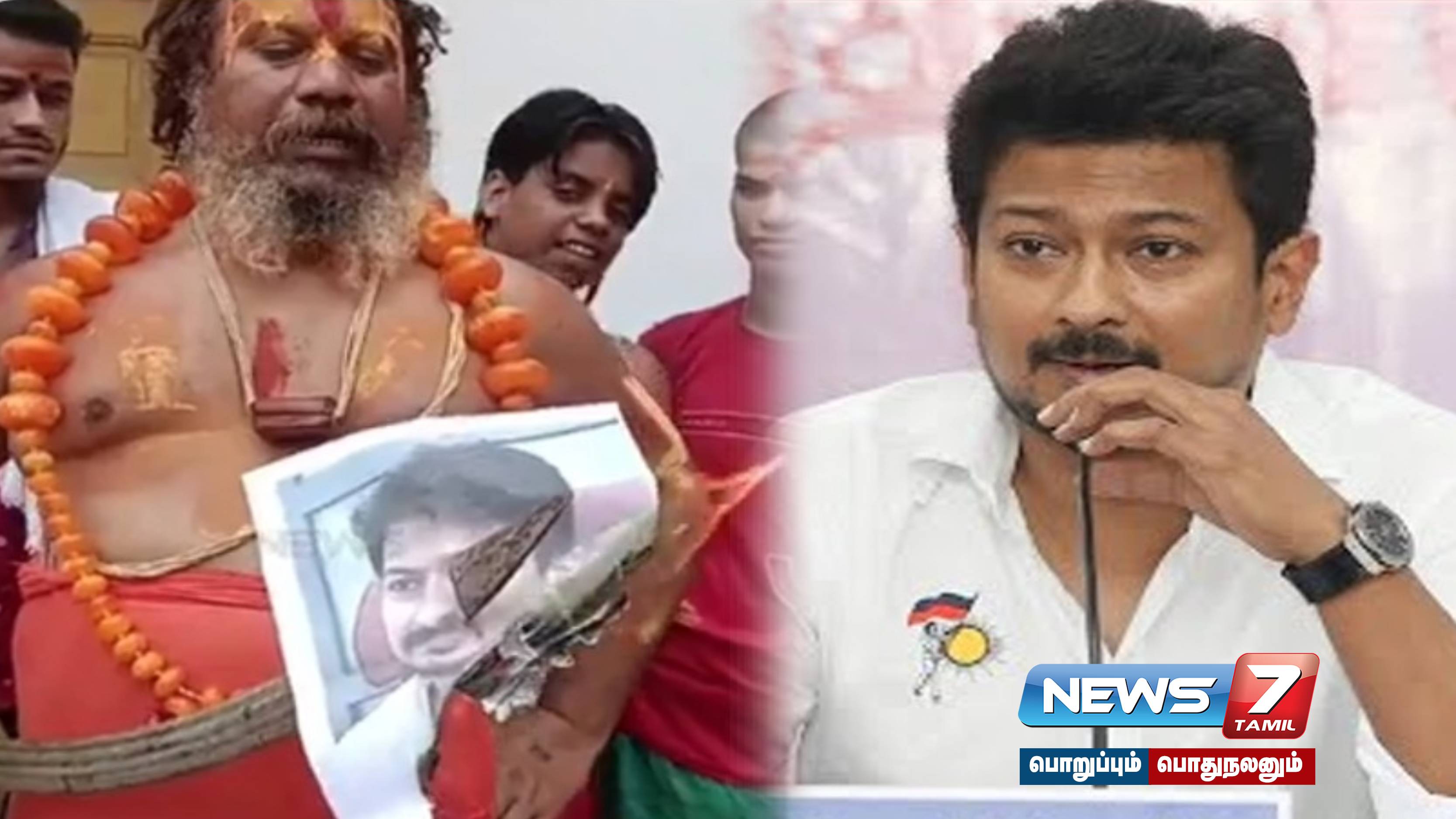 அமைச்சர் உதயநிதி ஸ்டாலினின் தலைக்கு 10 கோடி ரூபாய் சன்மானம் என அறிவித்த அயோத்தி சாமியாரின் பேச்சால் சர்ச்சை ஏற்பட்டுள்ளது.