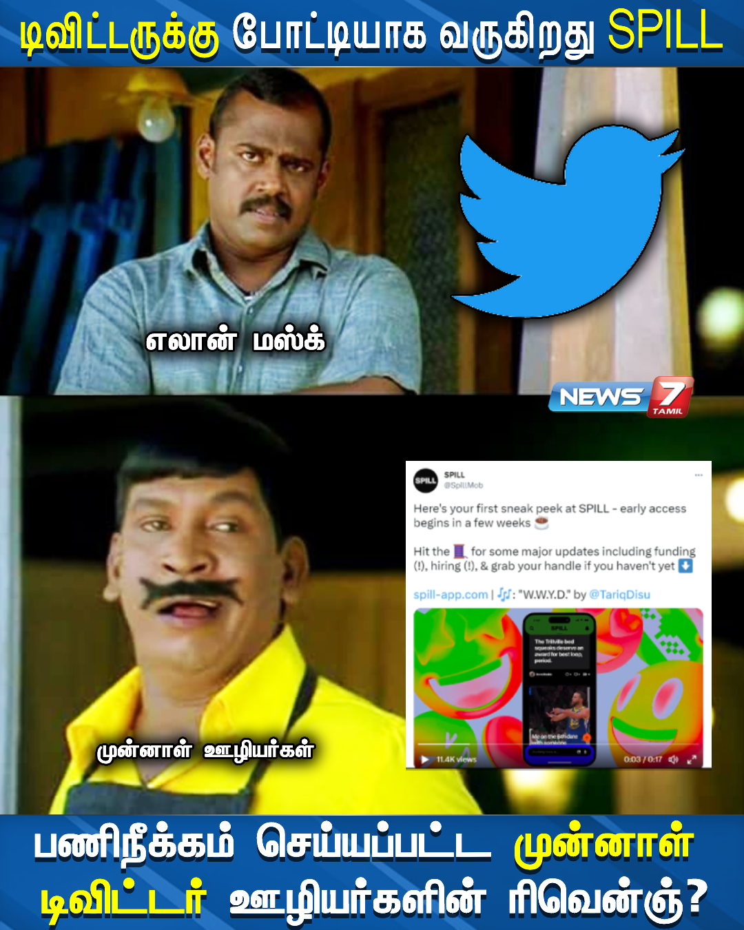 முன்னாள் டிவிட்டர் ஊழியர்கள் SPILL என்ற புதிய தளத்தை டிவிட்டருக்குப் போட்டியாக உருவாக்கியுள்ளனர்.