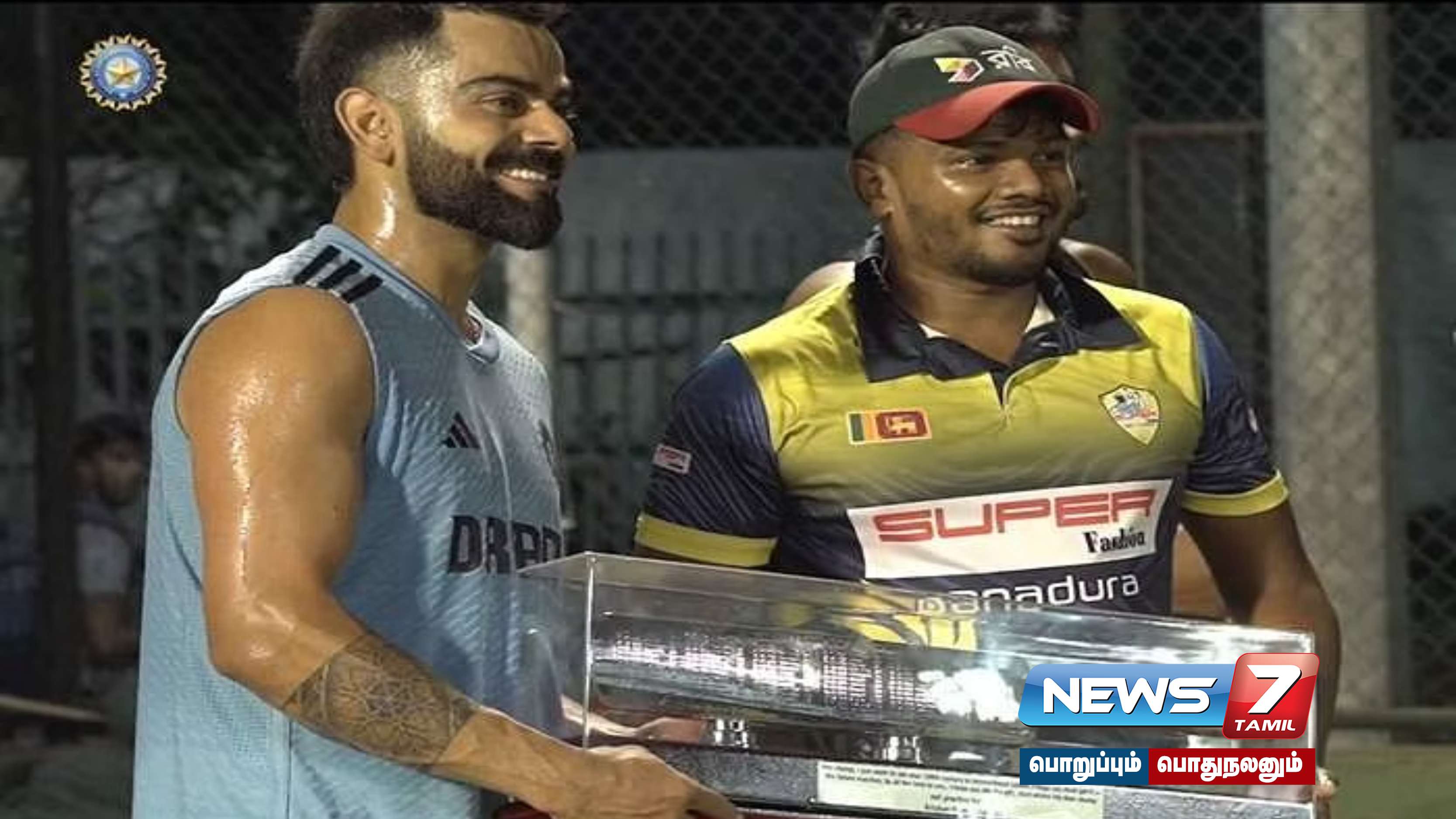 விராட் கோலிக்கு இலங்கை கிரிக்கெட் வீரர் அன்பு பரிசு வழங்கி சிறப்பித்த காணொலி சமூக வலைதளங்களில் வைரல் ஆகியுள்ளது.