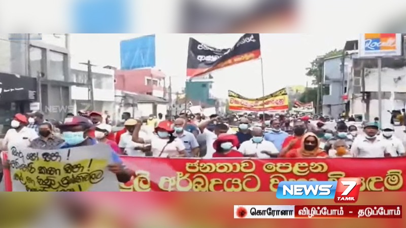 வருகின்றன. சில நாட்களுக்கு முன்பு தலைநகர் கொழும்பில் ஐக்கிய மக்கள் சக்தியினர் போராட்டம் நடத்தினர். இந்த நிலையில் ராஜபக்ச அரசு பதவி விலக வலியுறுத்தி நேற்று களுத்துறையில் மக்கள் விடுதலை முன்னணி கட்சியினர் போராட்டத்தில் ஈடுபட்டனர். இதுதொடர்பான கண்டன பேரணியில் ஏராளமானோர் பங்கேற்றனர்.