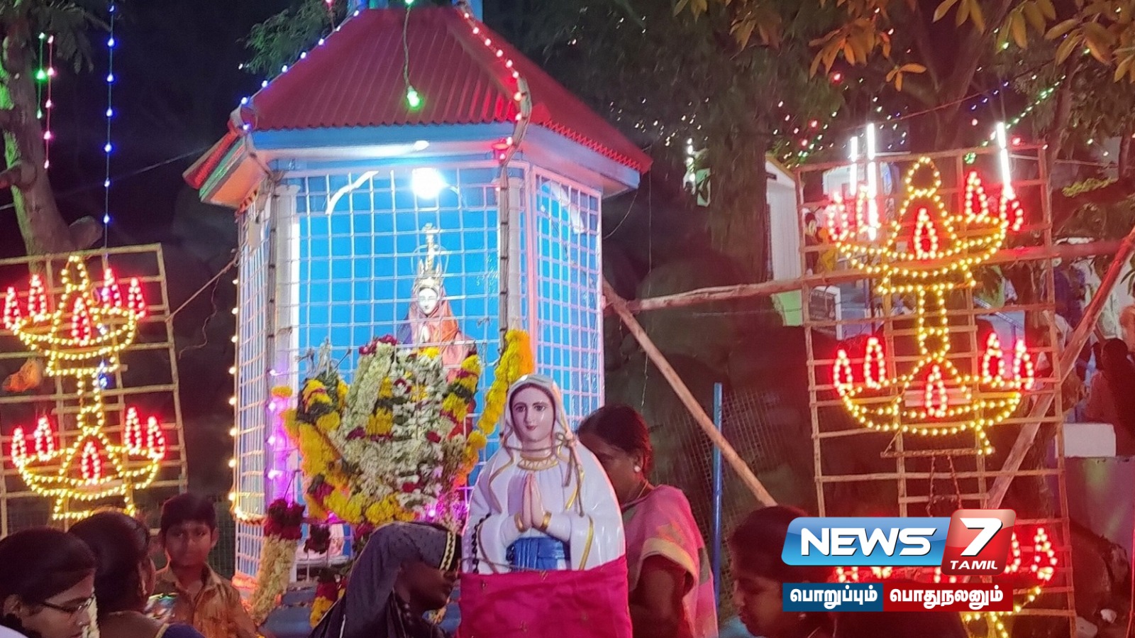 இந்த நிலையில், விழாவின் தொடக்கமாக லூர்து அன்னையின் உருவம் பொறித்த கொடியினை ஆலய பங்குமக்கள் ஊர்வலமாக வீடு வீடாக மேளதாள இசை முழங்க வானவேடிக்கையுடன் எடுத்து சென்றனர். அதனை தொடர்ந்து ஆலயத்தில் உள்ள கொடி மரத்தில் கொடியை ஏற்றுவதற்கு தருமபுரி முதன்மை மறைமாவட்ட குரு அருள்ராஜ் ,மற்றும் ஆலய பங்குதந்தை உள்ளிட்டோர் கொடிக்கு சிறப்பு ஜெபம் செய்து, கொடி மரத்தில் கொடியை ஏற்றி வைத்தனர். அப்போது அங்கிருந்த ஆயிரக்கணக்கான மக்களில் சிலர் முழங்கால் மண்டியிட்டு பிராத்தனை செய்தனர்.