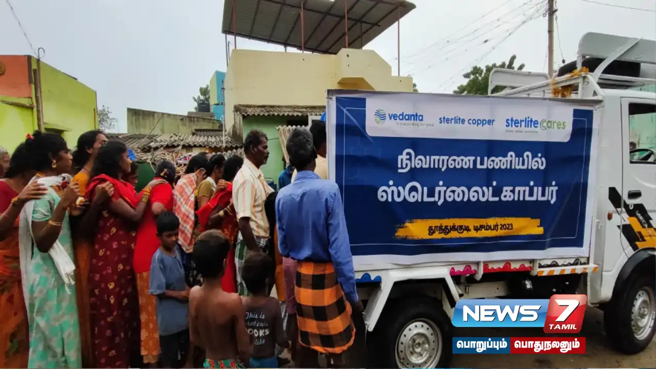 தூத்துக்குடியில் மழை வெள்ள பாதிப்புக்கு உள்ளானோருக்கு ஸ்டெர்லைட் காப்பர் நிறுவனம் நிவாரணப் பணிகளை செய்து வருகிறது.