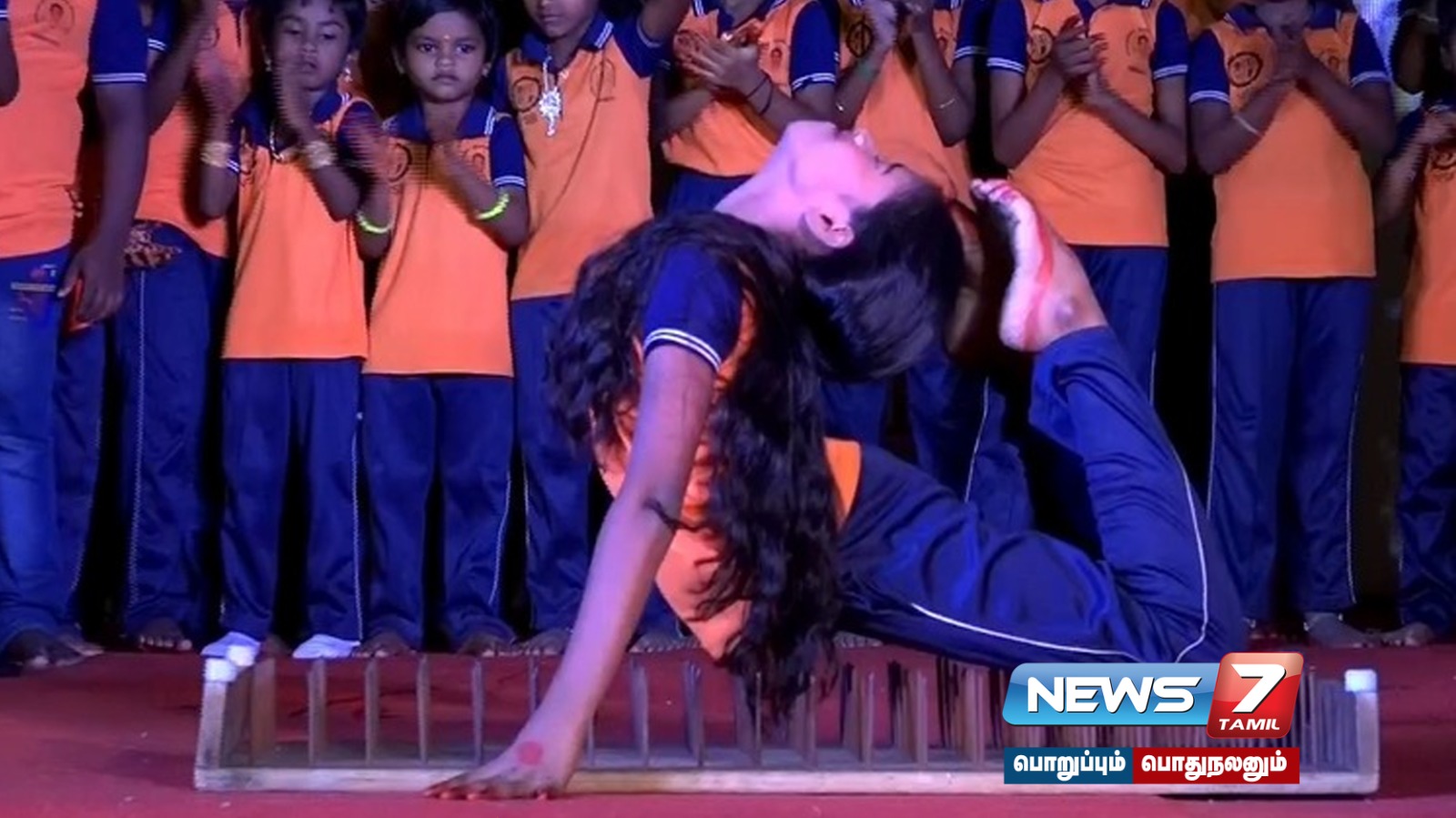 மற்றும் பாடல்கள் பாடி அசத்தினர். மேலும், ஆணிப்படுக்கையில் யோகா செய்து