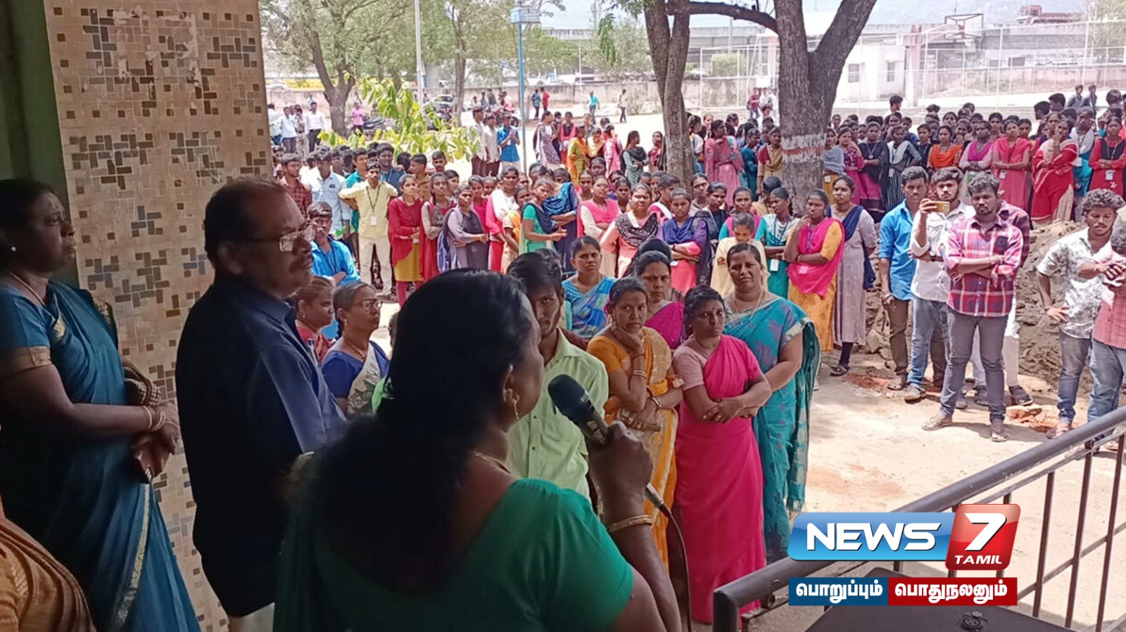 அதிகாரிகள் ஆய்வு செய்ததை தொடர்ந்து கல்லூரி வளாகத்திற்குள் தொழில் நுட்ப பூங்கா அமைக்க எதிர்ப்பு தெரிவித்து 1000க்கும் மேற்பட்ட கல்லூரி மாணவ, மாணவிகள் வகுப்புகளை புறக்கணித்து போராட்டத்தில் ஈடுபட்டனர். பின்னர் கல்லூரி முதல்வர் பானுமதி பேச்சுவார்த்தை நடத்தியதை தொடர்ந்து மாணவ மாணவிகள் கலைந்து சென்றனர்.