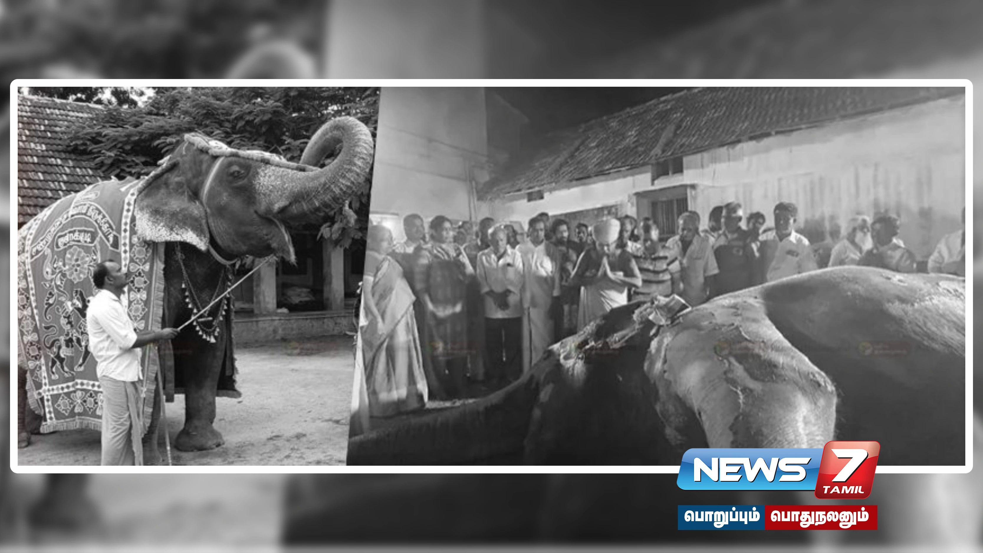 தீ விபத்து காரணமாக குன்றக்குடி சண்முகநாதர் கோவில் யானை சுப்புலட்சுமி(53) நேற்று நள்ளிரவு உயிரிழந்தது.