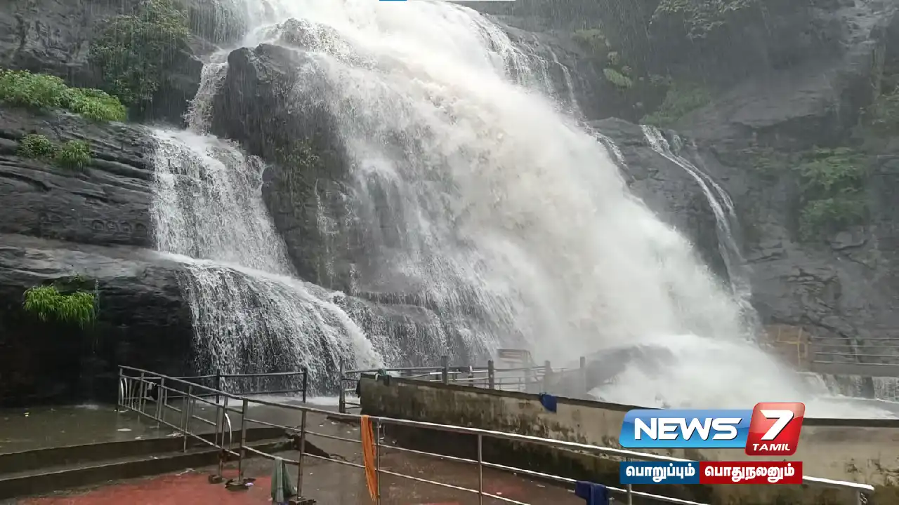 மேற்கு தொடர்ச்சி மலைப் பகுதிகளில் நேற்று (டிச.16) இரவு கொட்டி தீர்த்த கனமழையால் குற்றாலம் அருவிகளில் சுற்றுலா பயணிகள் குளிக்கத் தடை விதிக்கப்பட்டுள்ளது.