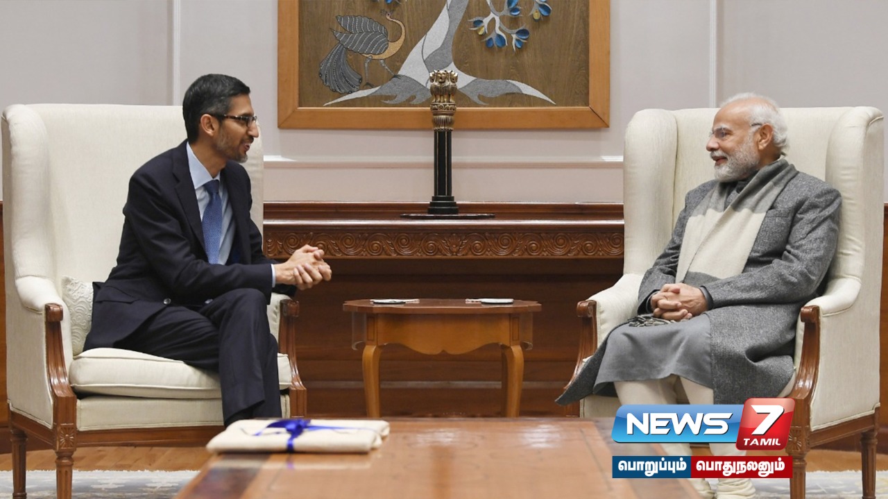 இந்தியா வந்துள்ள சுந்தர் பிச்சை டெல்லியில் பல்வேறு நிகழ்ச்சிகளில் பங்கேற்றார். பிரதமர் மோடியையும் அவர் இன்று சந்தித்து பேசினார். வளரும் மற்றும் வளர்ச்சி அடைந்த நாடுகளின் அமைப்பான ஜி20 அமைப்பின் தலைமை பொறுப்பை இந்தியா ஏற்றுள்ள நிலையில் அதற்கு தேவையான ஒத்துழைப்பை கூகுள் நிறுவனம் வழங்கும் என அப்போது பிரதமர் மோடியிடம் சுந்தர்பிச்சை உறுதி அளித்ததாகக் கூறப்படுகிறது.