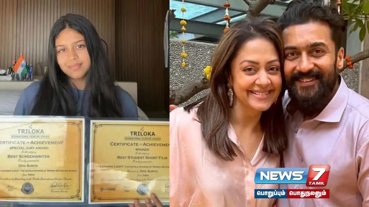 சூர்யாவின் மகள் தியா ஆவணப்படத்தை இயக்கி விருது பெற்றுள்ளார்.
