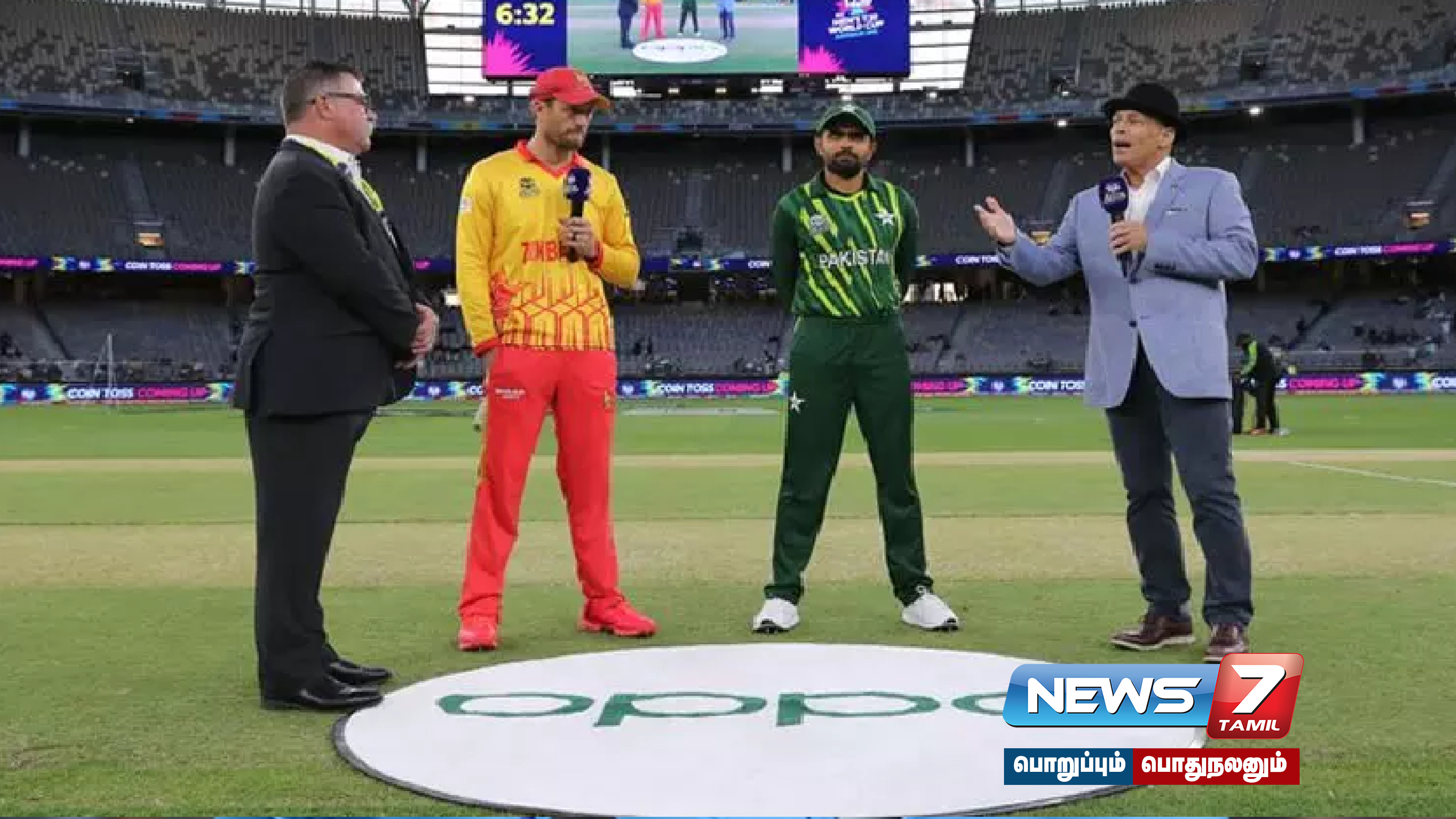 பாகிஸ்தான்-ஜிம்பாவே இடையேயான சூப்பர் 12 சுற்றில் டாஸ் வென்ற ஜிம்பாவே அணி பேட்டிங்கை தேர்வு செய்துள்ளது.