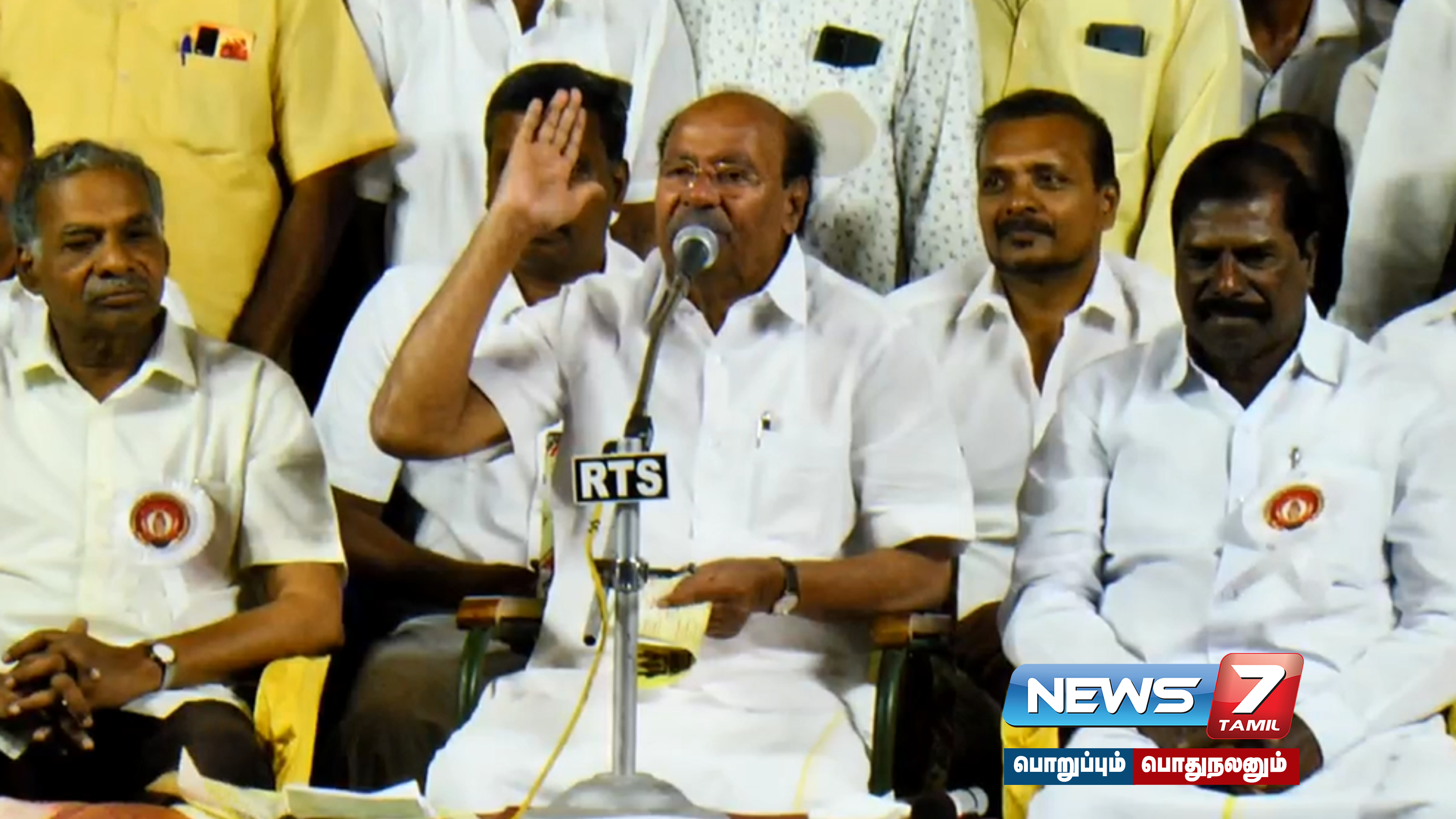 இக்கூட்டத்தில் பேசிய பாமக நிறுவனர் ராமதாஸ், “தமிழ்நாட்டில் 50 ஆயிரத்திற்கும் மேற்பட்ட அறிஞர்கள் உள்ளனர். அவர்கள் கலப்பு மொழியைத்தான் பேசுகின்றனர். தமிழ் மெல்லச் சாகவில்லை. வேகமாக செத்து வருகின்றது. லண்டனில் நுழைந்தால் பெயர் பலகை எவ்வாறு இருக்குமோ அப்படி தமிழகத்தில் உள்ளது. எந்த மொழியை வேண்டுமானாலும் பேசுங்கள். ஆனால் தமிழில் மற்ற மொழியை கலக்காதீர்கள்.