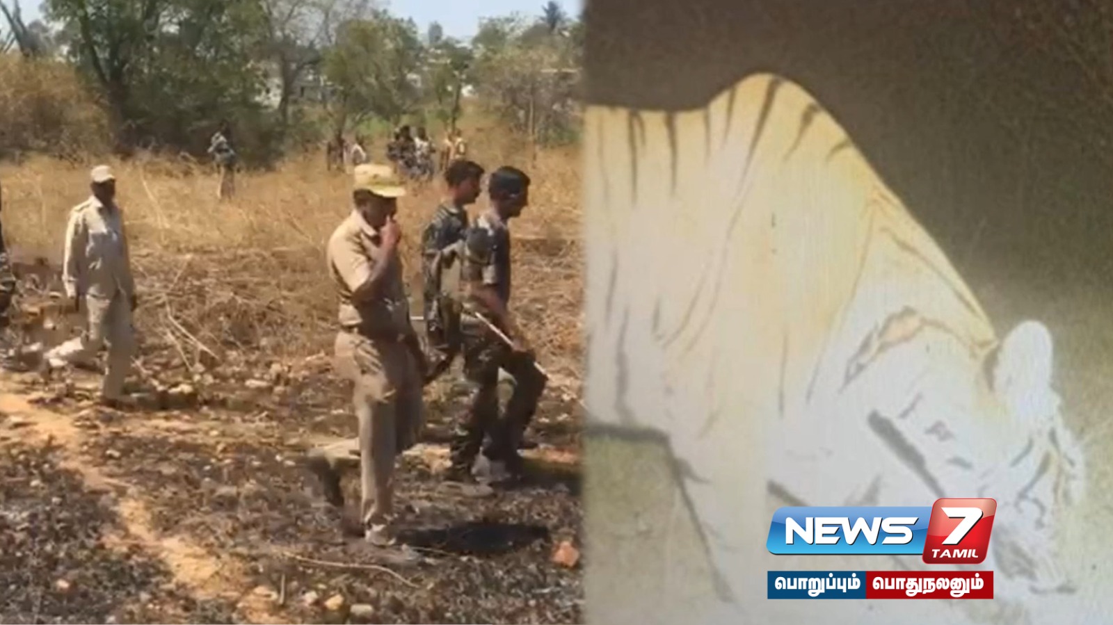 தேடினார்கள். சேஷன் நகர் அருகே மானாவாரி நிலத்தில் காணாமல் போன பசுமாடு இறந்து கிடந்தது கண்டுபிடிக்கப்பட்டது. பின்னர் இறந்த மாட்டினை வனத்துறையினர் ஆய்வு செய்தனர். அதே போல் அப்பகுதியில் பதிவான கால் தடயங்களை ஆய்வு செய்தனர். இதில் வனப்பகுதியில் இருந்து வெளியேறிய புலி பசுமாட்டை கடித்து கொன்றதும், மற்றொரு பசு மாட்டை கடித்து படுகாயப்படுத்தியதும் உறுதிப்படுத்தப்பட்டது.