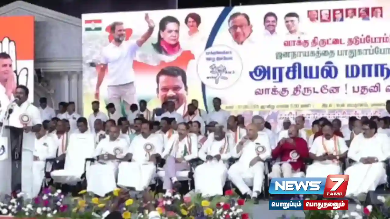 இந்த நிலையில் இன்று நெல்லையில் தமிழக காங்கிரஸ் கட்சி சார்பில் வாக்கு திருட்டை தடுப்போம், ஜனநாயகத்தை பாதுகாப்போம் என்ற தலைப்பில் மாநில மாநாடு நடைபெற்றது.