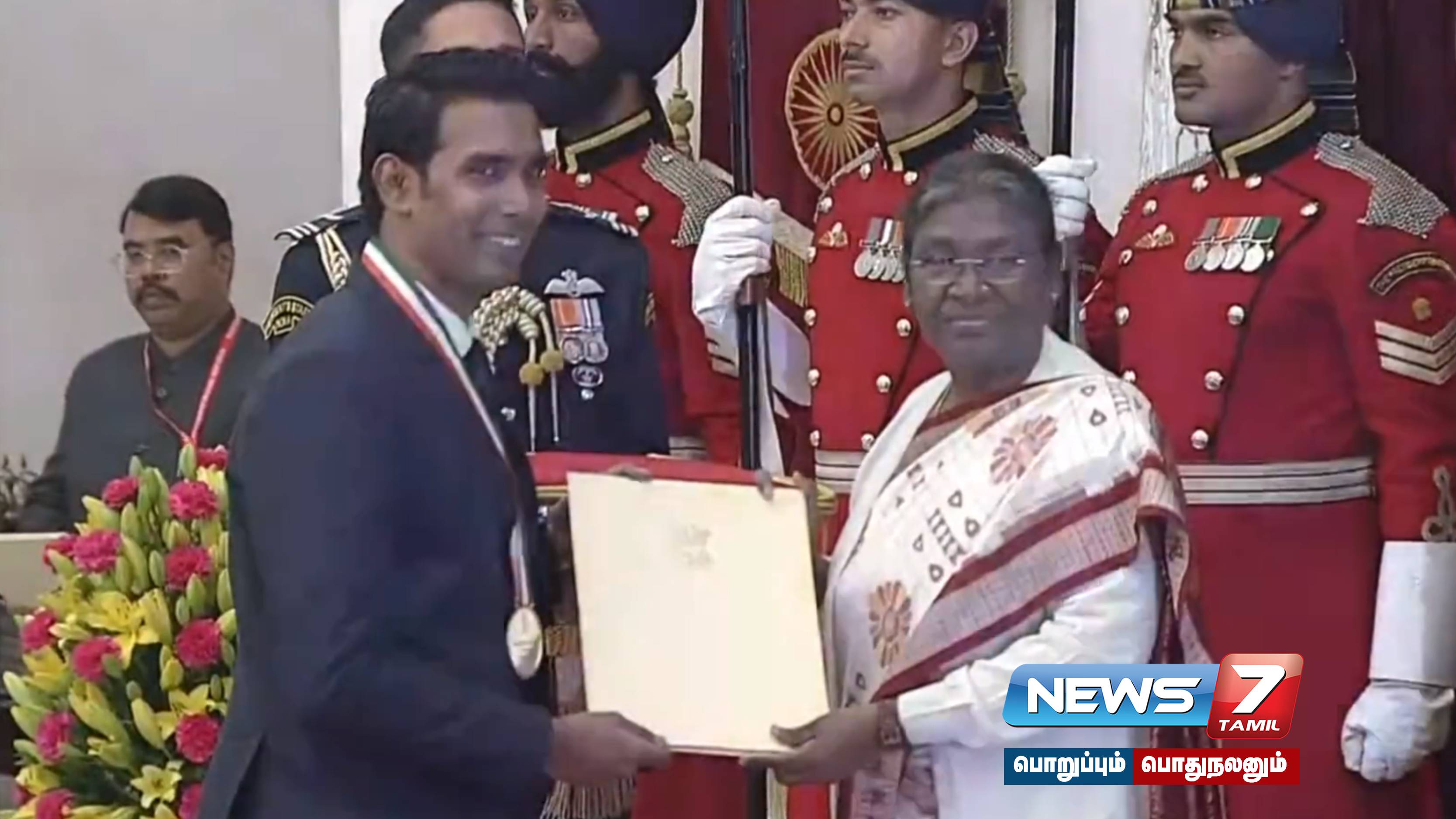 டேபிள் டென்னிஸ் வீரர் சரத் கமல், விளையாட்டுத் துறையின் உயரிய விருதாக கருதப்படும் மேஜர் தயான் சந்த் கேல் ரத்னா விருதை குடியரசுத் தலைவரிடமிருந்து பெற்றுக் கொண்டார். தமிழ்நாட்டைச் சார்ந்த செஸ் கிராண்ட்மாஸ்டர் பிரக்யானந்தா, அர்ஜுனா விருதைப் பெற்றார். அர்ஜுனா விருதுக்கு தேர்வான மற்ற வீரர்களுக்கும் குடியரசுத் தலைவர் திரெளபதி முர்மு விருதுகளை வழங்குகிறார்.