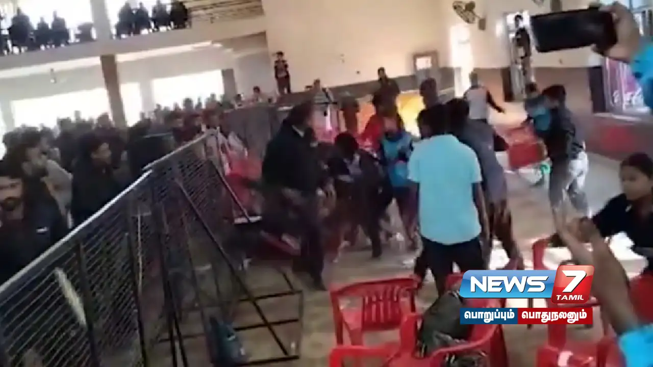 இதனால் இரு அணிகளுக்கு இடையே கைகலப்பு ஏற்பட்டு நாற்காலிகளை தூக்கி சண்டையிடும் காட்சிகள் வெளியாகி உள்ளது. இச்சம்பவம் தற்போது பெரும் பரபரப்பை ஏற்படுத்தியுள்ளது. இதற்கு முன்னரும் இதேபோல பல்கலைக்கழகங்களுக்கு இடையேயான ஆடவர்களுக்கான கபடி போட்டியின் போது தமிழக வீர ர்கள் மீது ராஜஸ்தான் அணியினர் தாக்குதல் நடத்தியது குறிப்பிடத்தக்கது.