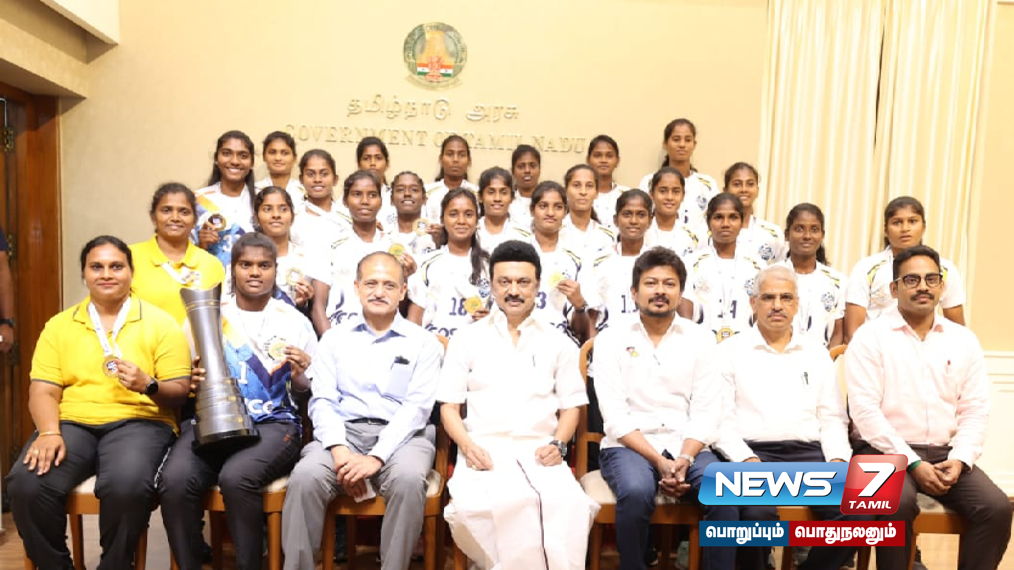 தேசிய மகளிர் கால்பந்து சாம்பியன்ஷிப் போட்டியில் தங்கக்கோப்பை வென்ற தமிழ்நாடு அணி வீராங்கனைகள் முதல்-அமைச்சர் மு.க.ஸ்டாலினை நேரில் சந்தித்து வாழ்த்து பெற்றனர்.