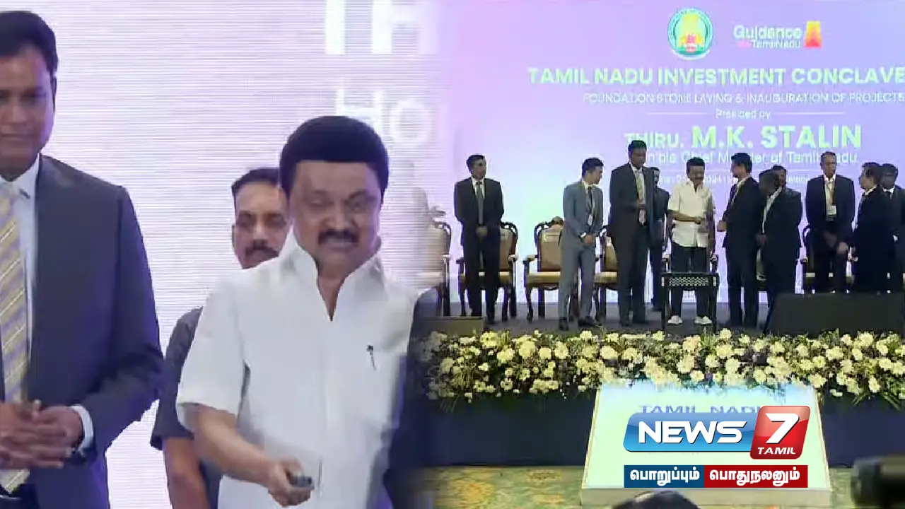 சென்னையில் முதலமைச்சர் மு.க.ஸ்டாலின் தலைமையில் இன்று (21.08.2024) ‘தமிழ்நாடு முதலீட்டு மாநாடு- 2024’ நடைபெற்று வருகிறது. முதலீட்டாளர்கள் மாநாட்டில் முடிவுற்ற 19 புதிய திட்டங்களை முதல்வர் ஸ்டாலின் தொடங்கி வைத்தார். ரூ. 51,157 கோடி மதிப்பிலான 28 தொழில் திட்டங்களுக்கு முதல்வர் அடிக்கல் நாட்டினார்.
