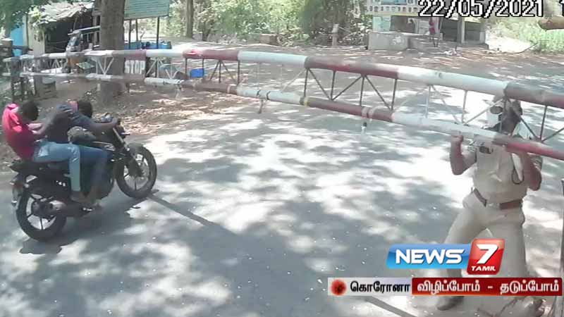 அப்படியும் நிற்காமல் வேகமாக வந்த இருசக்கர வாகனம் சோதனைச் சாவடியை நெருங்கியதைப் பார்த்தவுடன் , சோதனைச் சாவடி கேட்டை வனக்காவலர் தூக்க முயல்கிறார். அதற்குள் அதிவேகத்தில் வந்த இருசக்கர வாகனம் சோதனைச் சாவடி தடுப்பு கேட் மீது மோதிச் சென்றது.