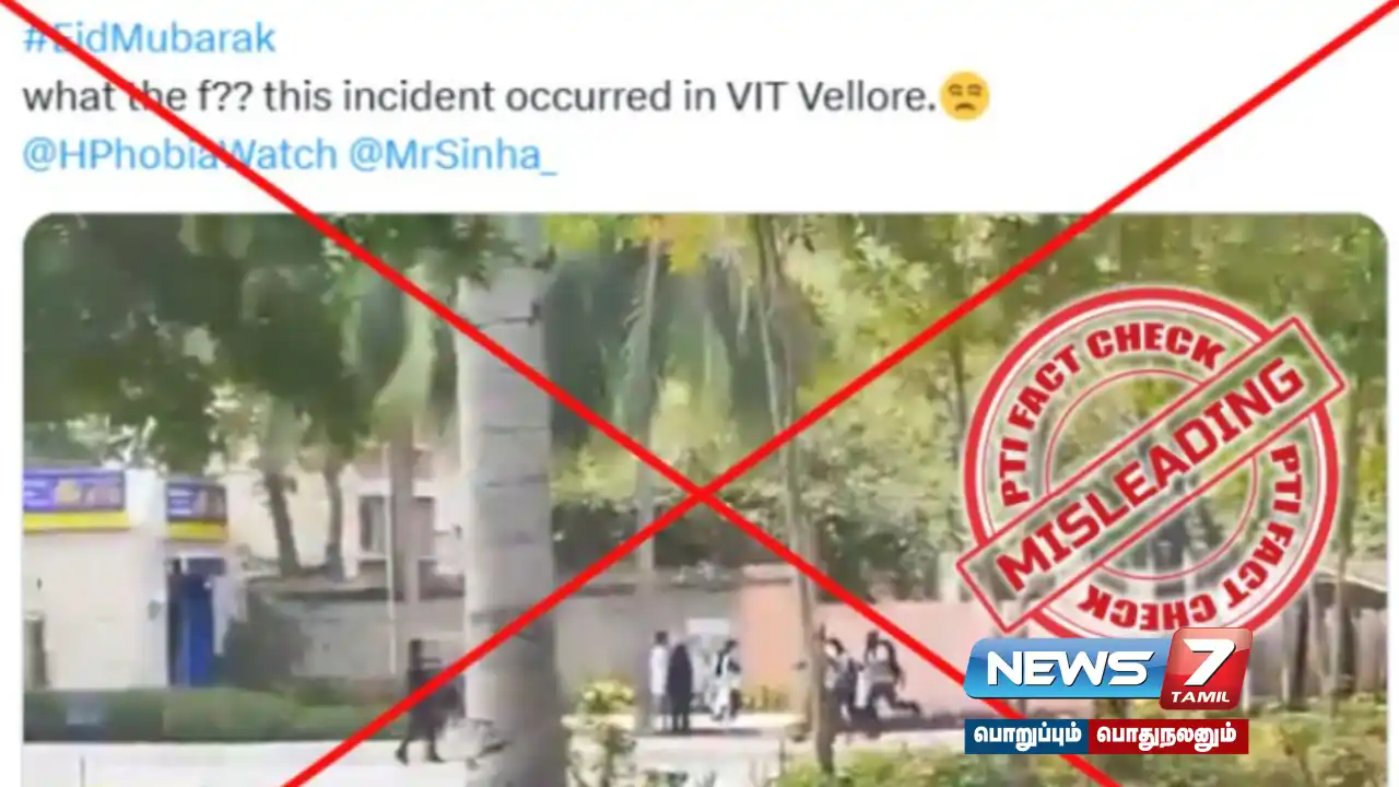 வேலூர் தொழில்நுட்பக் கழகத்தின் (VIT) பல்கலைக்கழக வளாகத்தில் ஆயுதமேந்திய ஒரு குழு திடீர் குண்டுவெடிப்புகளை நடத்தியதாகக் கூறப்படும் ஒரு காணொலியை ஒரு X பயனர் மார்ச் 2 அன்று பகிர்ந்தார். அந்த காணொலியில், முகமூடி அணிந்த ஆயுதமேந்திய நபர்கள் பல்கலை. வளாகத்திற்குள் ஓடி, பிரதான கட்டிடத்திற்குள் நுழைவதற்கு முன்பு குண்டுவெடிப்புகளை நிகழ்த்துவதைக் காட்டியது. அந்த இடுகைக்கான இணைப்பு மற்றும் காப்பக இணைப்பு, ஒரு ஸ்கிரீன்ஷாட்டுடன் கொடுக்கப்பட்டுள்ளது.