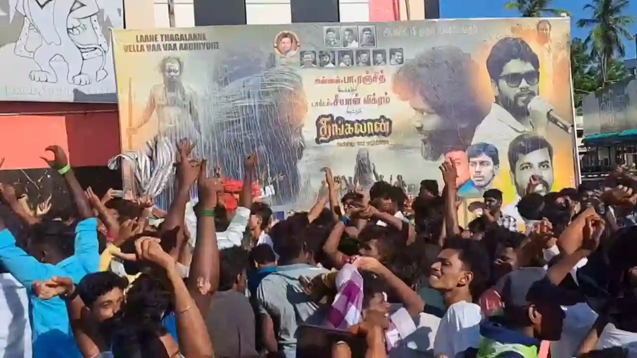 விக்ரம் நடித்துள்ள ‘தங்கலான்’ திரைப்படம் இன்று வெளியானதைத் தொடர்ந்து ரசிகர்கள் உற்சாக கொண்டாட்டத்தில் ஈடுபட்டனர்.