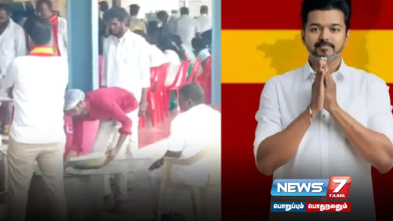 தவெக முதல் மாநாட்டிற்கு நிலம் கொடுத்த விவசாயிகளுக்கு தவெக தலைவர் விஜய் விருந்து அளித்து கௌரவித்தார்.