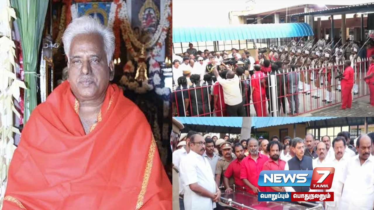 மறைந்த பங்காரு அடிகளாரின் உடல் அரசு மரியாதயுடன் 21 குண்டுகள் முழங்க சி நல்லடக்கம் செய்யப்பட்டது.