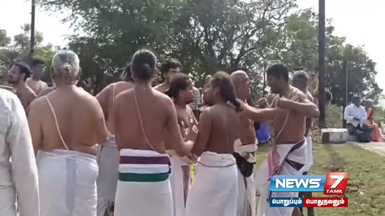 போது, வடக்கலை தென்கலை சேர்ந்தவர்களுக்குள் வாய் சண்டை ஏற்பட்டது.