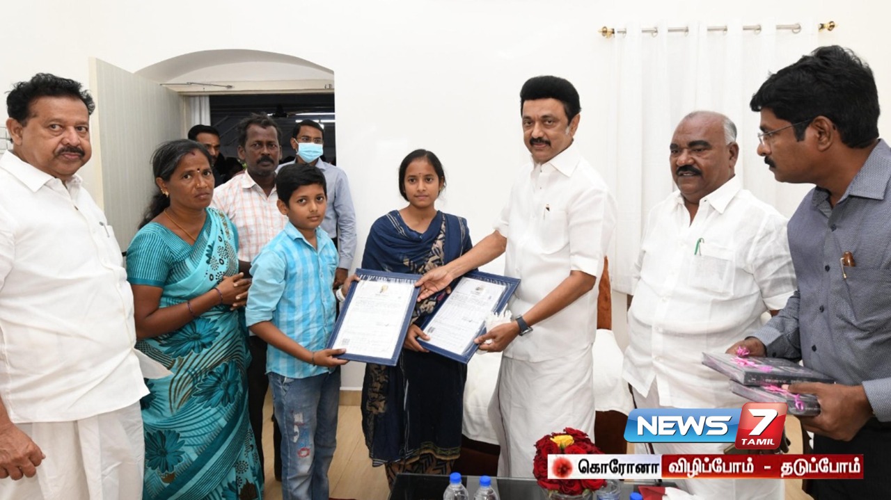 சாதி சான்றிதழ் வழங்கிய முதலமைச்சர் மு.க.ஸ்டாலினுக்கு மகிழ்ச்சியுடன் நன்றி தெரிவித்த குடும்பத்தினர்.